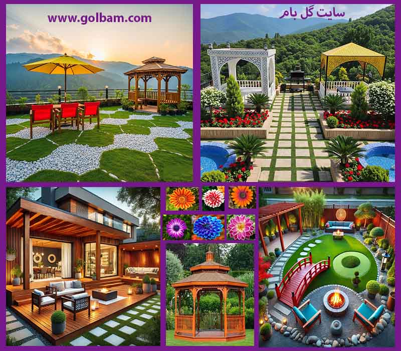 چیدمان وسایل و در نظر گرفتن فضاهای مختلف: مشخص کردن محل آلاچیق، مبلمان، مسیرها، آبنما، فضاهای کاشت گیاهان و...